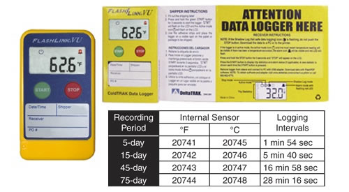 新 推出的FlashLink VU是記錄溫敏產(chǎn)品儲(chǔ)存和運(yùn)輸環(huán)境條件的理想儀器。這款運(yùn)輸途中數(shù)據(jù)記錄儀有一個(gè)大而容 易閱讀的液晶顯示屏,能夠提供即時(shí)的溫度信息和統(tǒng)計(jì)數(shù)據(jù),包括行程中的溫度上下極限、溫度超標(biāo)的累積時(shí)間、最高溫度、最低溫度和平均溫度。 FlashLink VU無(wú)需停止或下載記錄儀就能獲取溫度數(shù)據(jù)。即使是經(jīng)營(yíng)者不啟動(dòng)數(shù)據(jù)記錄儀,其專(zhuān)利的影子記錄?功能也能保證歷史溫度數(shù)據(jù)的獲取。一次性使用的 FlashLINK VU包裝在一個(gè)附有簡(jiǎn)便易行的使用說(shuō)明,,可見(jiàn)度極高的黃色紙盒內(nèi),幫助收貨方很快在貨堆里找到數(shù)據(jù)記錄儀。 DeltaTrak’s FlashLink VU Logger 是記錄儲(chǔ)存和運(yùn)輸溫度敏感產(chǎn)品溫度的理想設(shè)備。