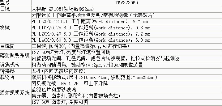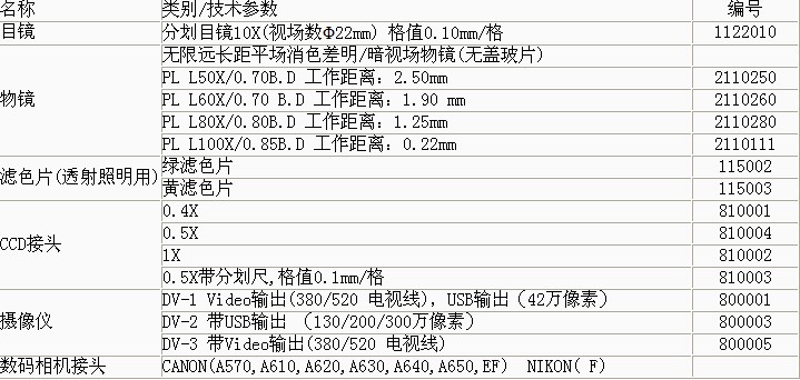 產(chǎn)品概述: 是一種多用途工業(yè)檢驗(yàn)用光學(xué)儀器,配置明/暗場物鏡、大視野目鏡與偏光觀察裝置,透反射照明采用“柯勒”照明系統(tǒng),,視場清晰。 功能特點(diǎn): 可用于半導(dǎo)體硅晶片、LCD基板、電路板、固體粉未及其它各種透明或不透明工業(yè)試樣的檢驗(yàn),,是生物學(xué)、金屬學(xué)、礦物學(xué)、精密工程學(xué)、電子工程學(xué)等研究的理想儀器 技術(shù)參數(shù): ▲ 采用無限遠(yuǎn)光學(xué)系統(tǒng)及模塊化功能設(shè)計(jì)。 ▲ 長工作距離明/暗視場平場物鏡,視場大而清晰。 ▲ 廣角平場目鏡:視場直徑Ф22mm。 ▲ 粗微動(dòng)同軸調(diào)焦機(jī)構(gòu),,粗動(dòng)松緊可調(diào),帶限位鎖緊裝置,微動(dòng)格值:2μm。 ▲ 內(nèi)置式可切換偏光觀察裝置,起偏器可360°旋轉(zhuǎn)。 ▲ 上光源采用翻蓋式12V50W鹵素?zé)粝,更換燈炮安全便捷,下光源采用12V30W鹵素?zé),加裝散熱片。 ▲ 三目鏡筒可自由切換目視觀察與顯微攝影,攝影時(shí)可100%通光,適合暗視場顯微圖像拍攝。 基本配置: