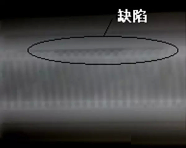 再從目前的焊接工藝水平來看經(jīng)過焊接的管體內(nèi)部表面非常的粗糙如圖2所示。而產(chǎn)品的工藝要求中并未對焊接后的內(nèi)部表面情況提出要求,只要求加熱器與管壁焊接良好不能存在加熱器與管壁未焊接相連的情況。因此由于內(nèi)部表面的各種堆積、裂紋等粗糙現(xiàn)象的存在將會使在超聲檢測中出現(xiàn)各種雜波影響檢測結(jié)果。另外經(jīng)焊接后的管體表面也很粗糙達(dá)不到超聲檢測所需的表面條件。因此超聲檢測也不適合加熱器與管體內(nèi)壁焊接情況的檢測。