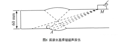 當聲波入射到焊縫下表面余高上時會產(chǎn)生波型轉換轉換成反射橫波和反射縱波也稱為變型橫波和變型縱波沿余高表面由于高低不平導致聲波入射角度各不相同因此各點反射橫波和反射縱波的傳播方向不同反射橫波和反射縱波傳到上表面又在上表面余高上反射部分沿原路徑返回被探傷接收。