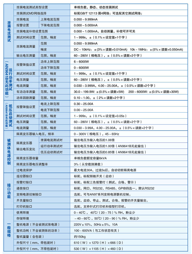 主要技術指標:集成了多項安規(guī)測試,適用于混合高效