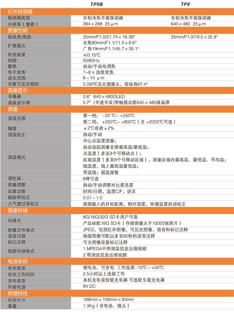 TP9是一款640×480分辨率的智能手持測溫產(chǎn)品。該產(chǎn)品具有觀察場景細(xì)節(jié)更加細(xì)膩,WIFI視頻傳輸,高德紅外熱像儀,配備高分辨率的OLED取景器,紅外熱像儀的作用,5.7寸的高分辨率彩色液晶觸控屏,具有陽光下可視的特點(diǎn),紅外熱像儀焦距,鎂鋁合金的金屬外殼鑄件,菲力爾紅外熱像儀,為用戶提供堅(jiān)固耐用儀器的同時(shí)還帶來了超凡的尊貴感受。