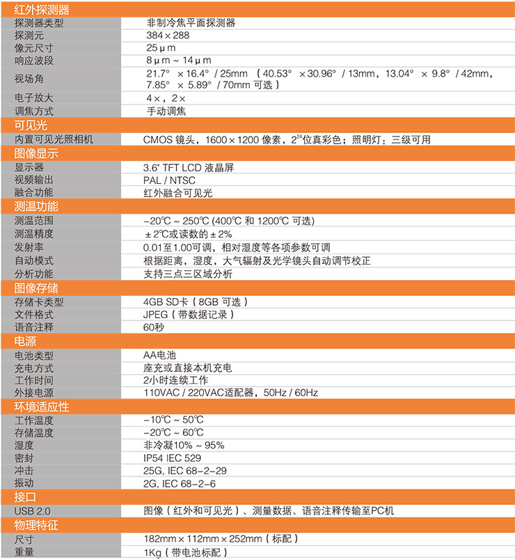 產(chǎn)品特點(diǎn) 靈活的電池適配性 隨處可見的普通AA電池可保證高效持續(xù)的工作效率 移動(dòng)式SD卡儲(chǔ)存 4G容量儲(chǔ)存卡能夠輕松儲(chǔ)存大量圖片和錄像 內(nèi)置照明燈 可在低照明環(huán)境下拍攝清晰可見光圖片 四種手動(dòng)鏡頭可選 以最少的投入便能夠滿足用戶不同的需求應(yīng)用 實(shí)時(shí)錄像 連接電腦可實(shí)時(shí)錄制紅外視頻,紅外熱像儀品牌,便于后期觀看及分析