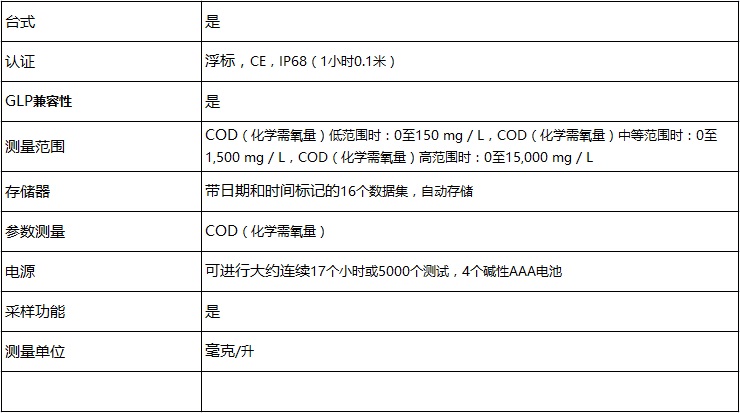 特點(diǎn) 910比色計(jì)是一款堅(jiān)固耐用的防水型單參數(shù)測(cè)量?jī)x器,,用于測(cè)量COD(化學(xué)需氧量)。