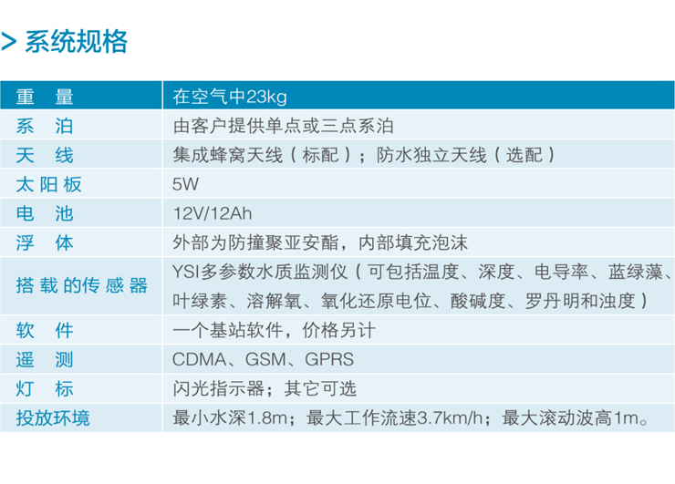 > 七個簡單的投放步驟 · 激活調(diào)制解調(diào)器和帳戶 · 在能上網(wǎng)的計算機上安裝基站軟件 · 使用EcoWatch 軟件設置YSI 多參數(shù)水質監(jiān)測儀 · 在實驗室測試通訊連接狀況 · 確定投放地,,安裝泊系繩和固定錘 · 在安全的地方投放浮標 · 定期維護傳感器及其設備